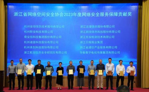 4月2日,浙江省網(wǎng)絡(luò )安全空間安全協(xié)會(huì )第二屆會(huì )員大會(huì )第一次會(huì )議順利召開(kāi),浙江省委網(wǎng)信辦副主任馬曉軍出席會(huì )議并致辭。會(huì )議對在技術(shù)創(chuàng )新、服務(wù)支撐等方面取得優(yōu)良成績(jì)和杰出貢獻的會(huì )員單位進(jìn)行了表彰,遠望信息現場(chǎng)獲頒2023年度網(wǎng)絡(luò )安全服務(wù)保障貢獻獎。