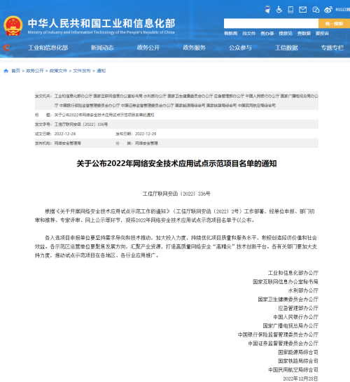 近日, 國家工信部正式發(fā)布《2022年網(wǎng)絡(luò )安全技術(shù)應用試點(diǎn)示范項目名單》,由浙江省人力資源和社會(huì )保障信息中心與遠望信息聯(lián)合申報的“專(zhuān)網(wǎng)安全管控體系建設”項目成功入選。